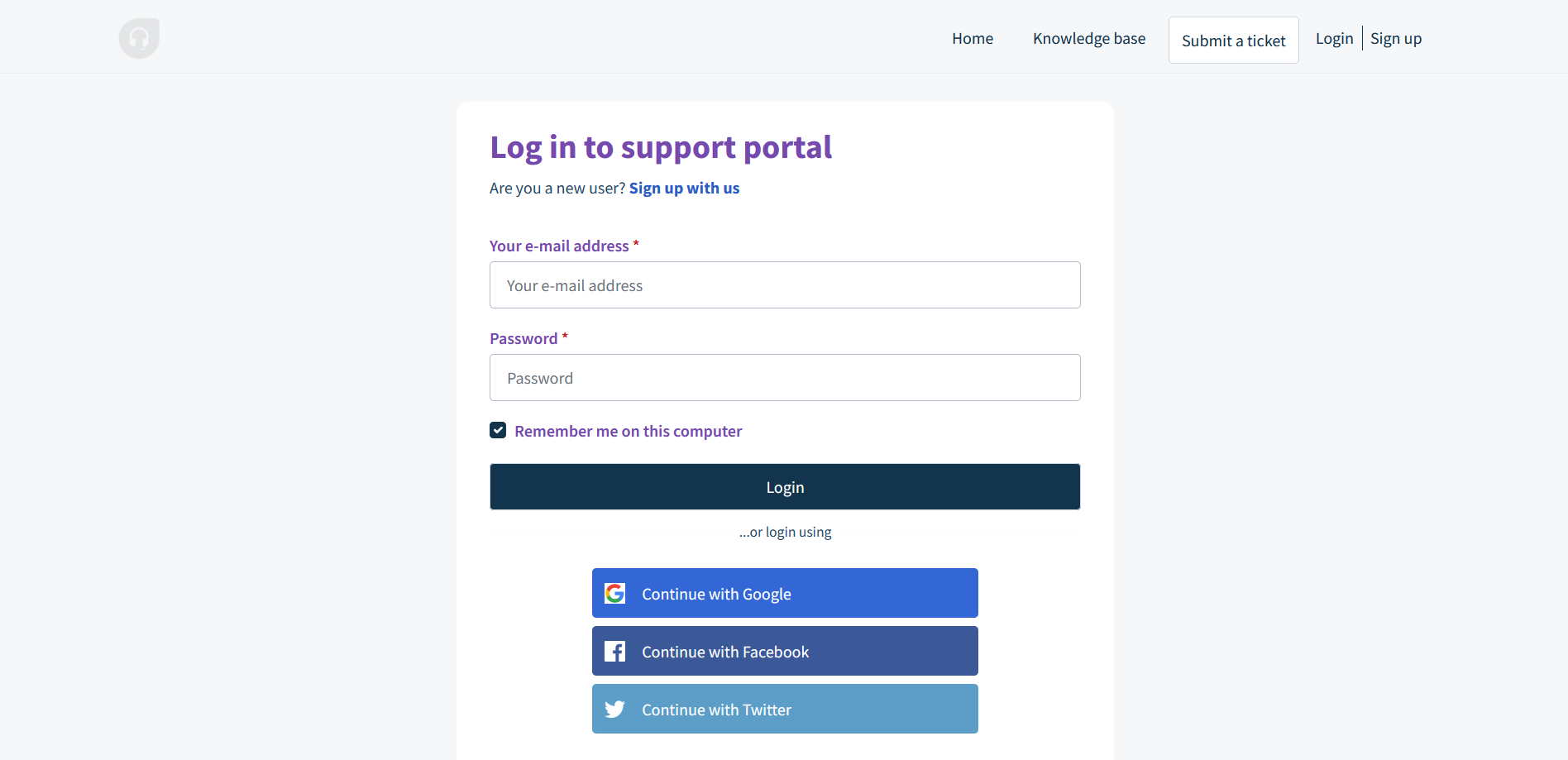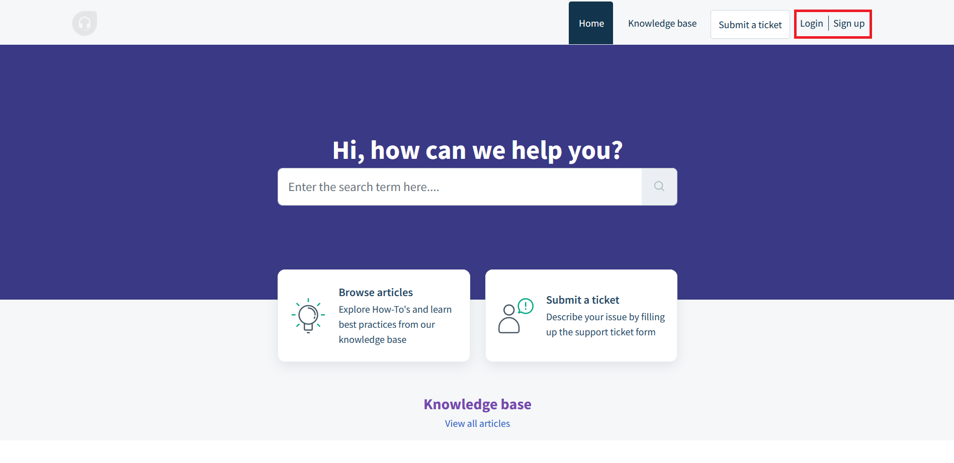 A new user can create an account by clicking Sign up in the upper-right corner of the customer portal: