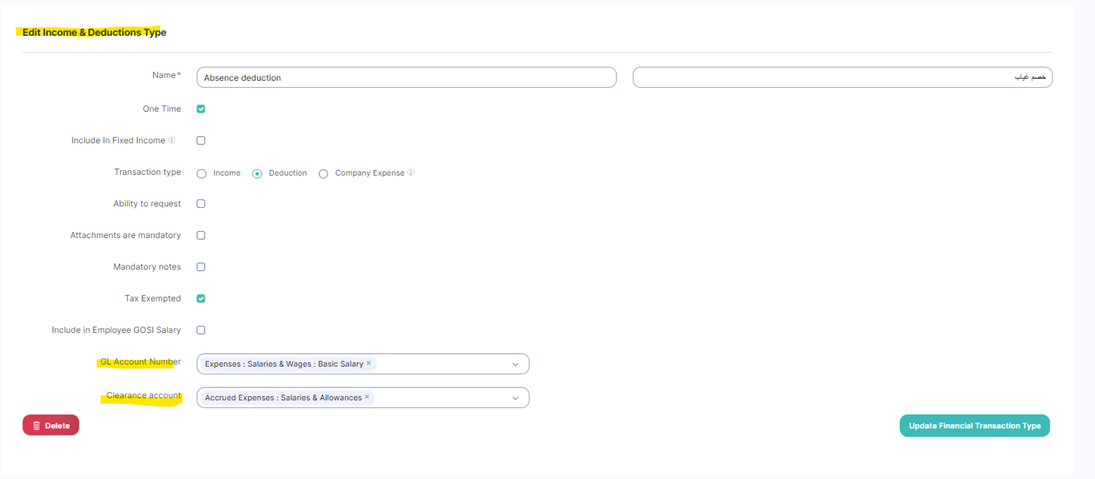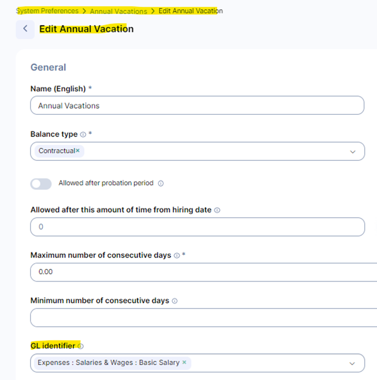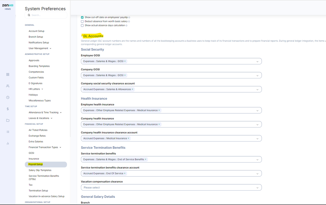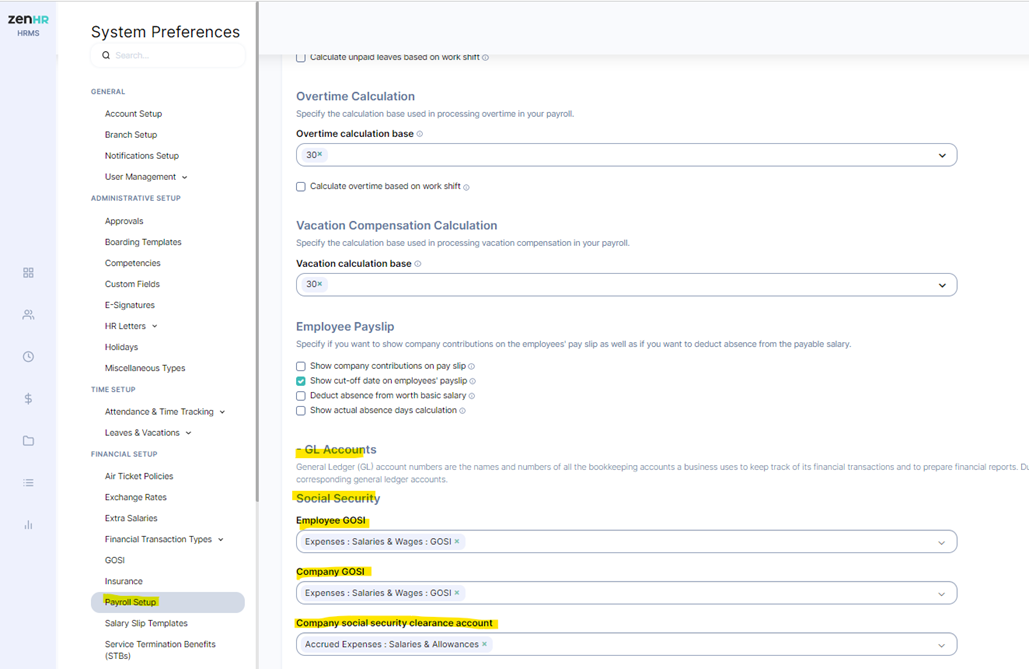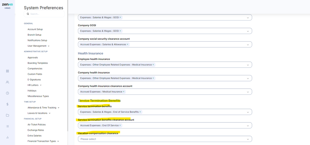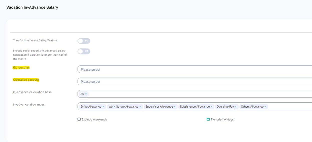 System Preferences > Financial setup > Vacation In-Advance Salary