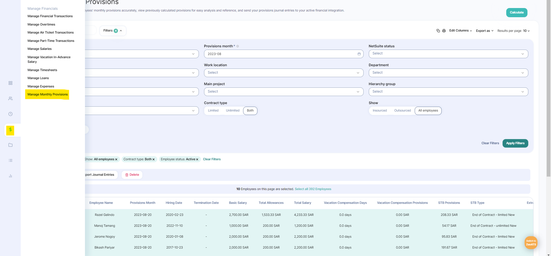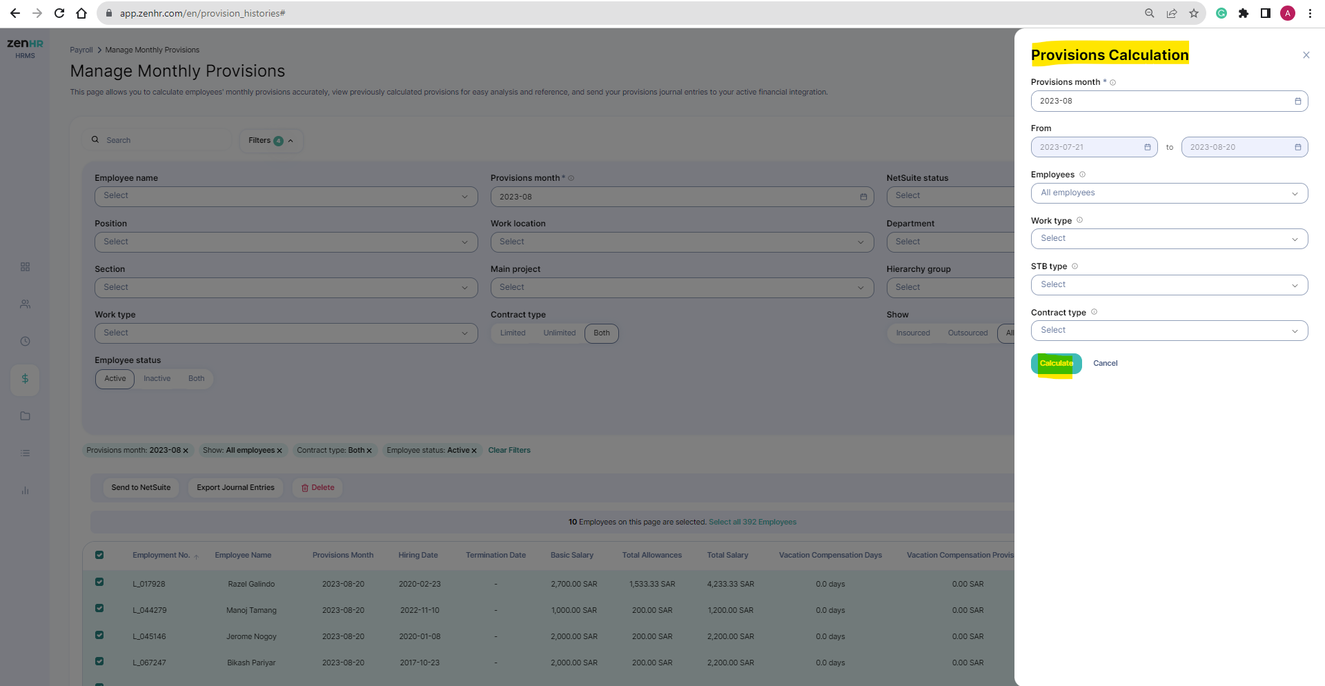 1. Go to Payroll> Manage Monthly provision> click calculate at top of page in green.