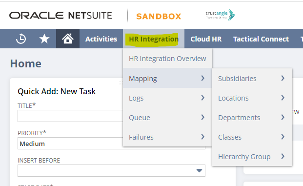 When creating an employee and adding a location and department is sent to NetSuite automatically.