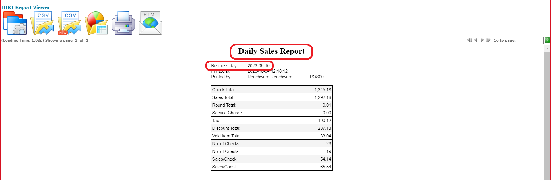 As seen below you can see the daily sales report for the specified date.
