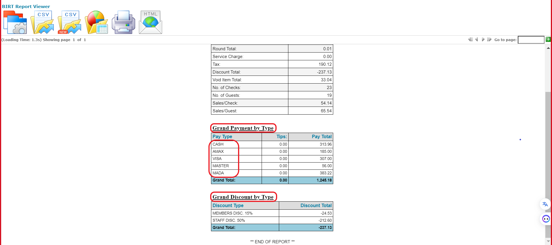 As seen below, you can see the food and beverage sales report for the specified date.
