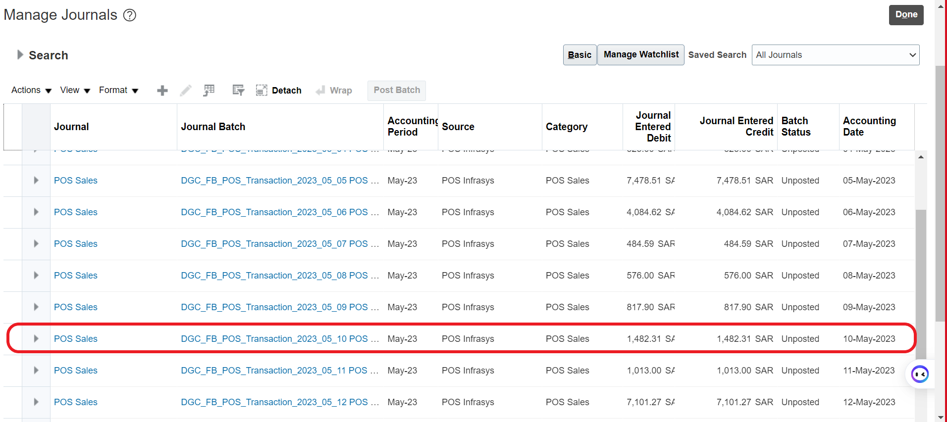 Journal Batch: Which location