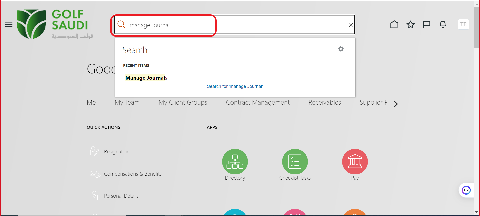 A. Home page → Search Bar → Manage Journal
