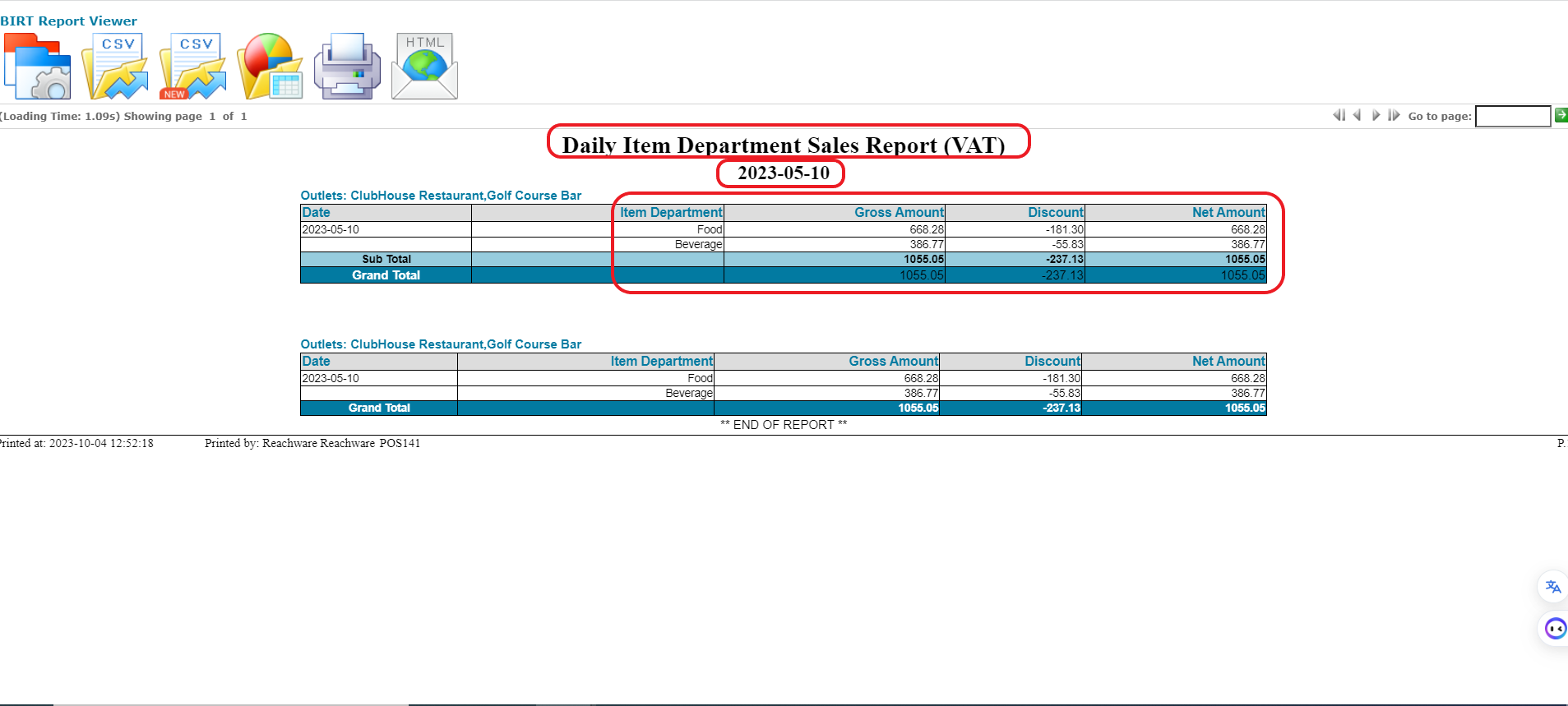While validating the daily item department sales report, please not that the gross amount is stated without the discount amount, the sum of the gross amount and discount equals the amount that’s stated on oracle fusion as food or beverage.