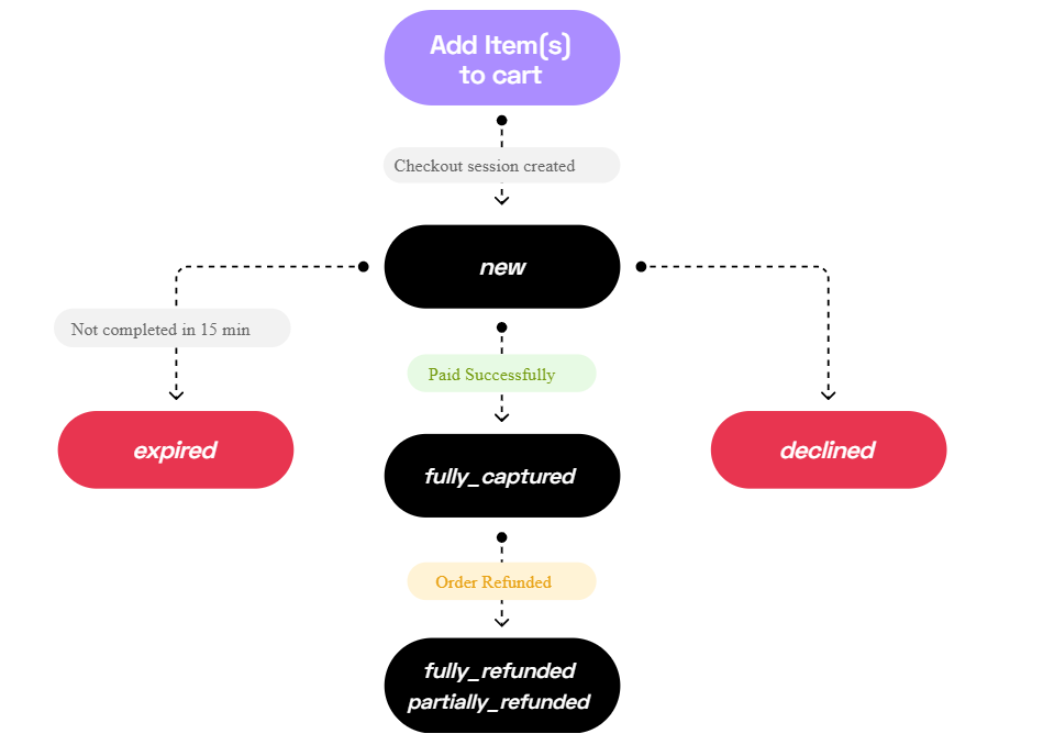 The customer will then be redirected to our website via the respective redirect URLs that were provided under the merchant_url object in your checkout session request.