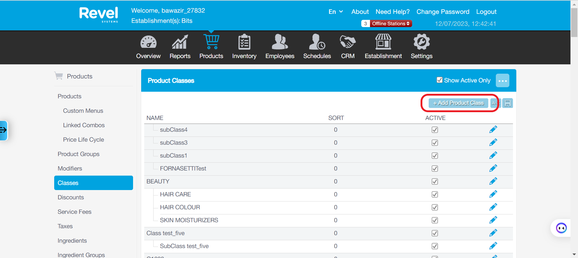 Products → Classes