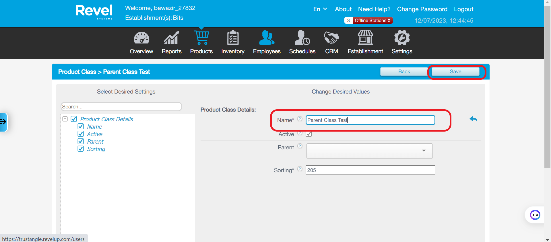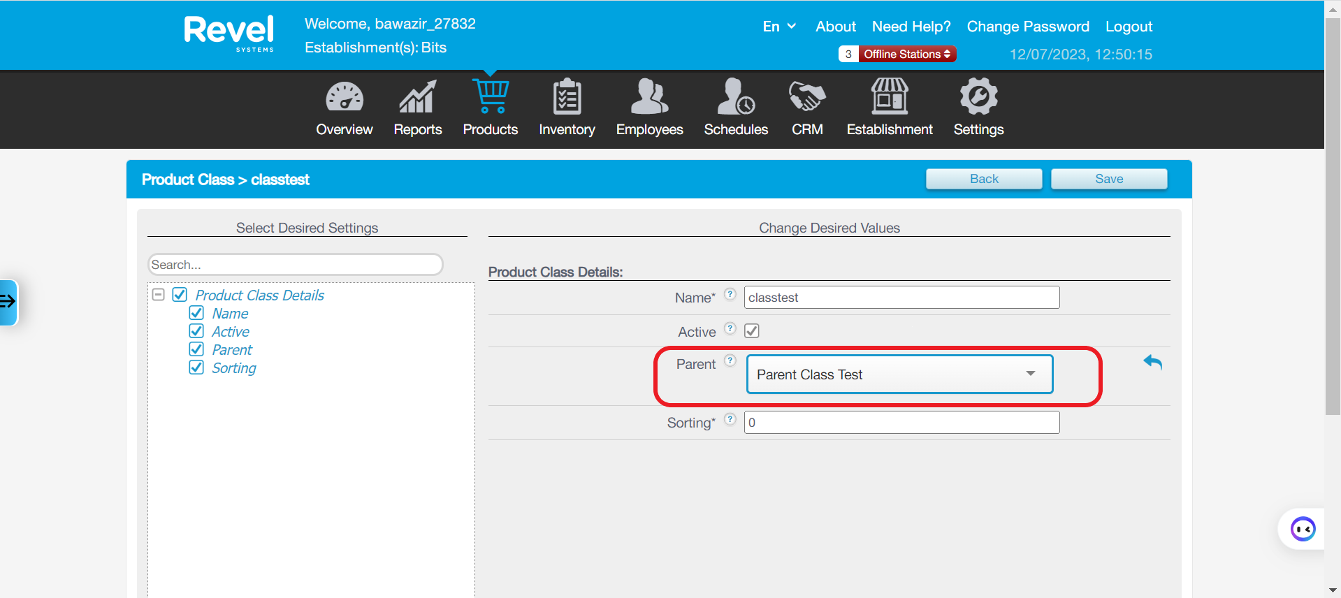 Please enter the name of the parent class and save, here we named it as Parent Class Test.