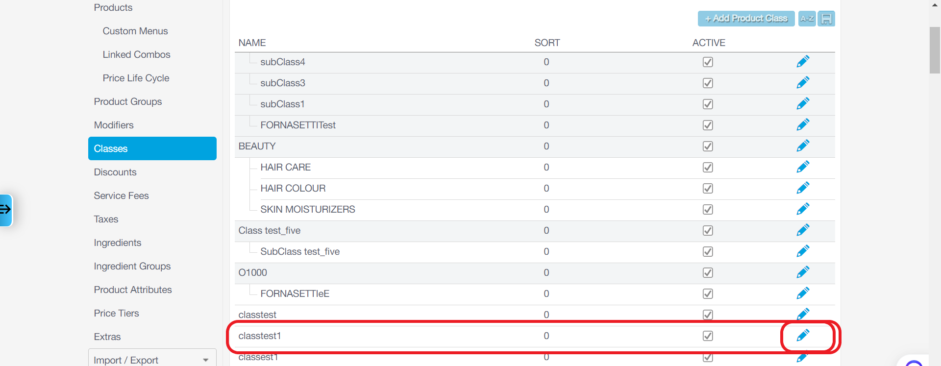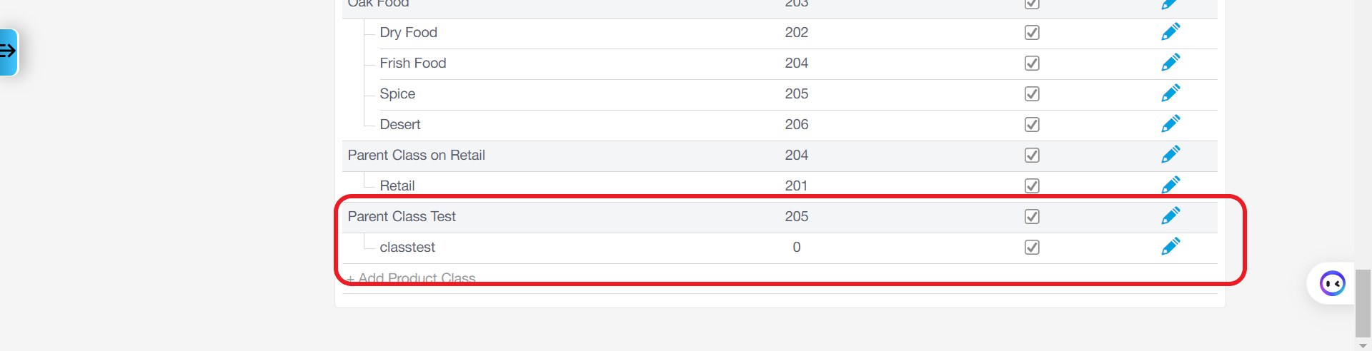 Choose a class you want to set a parent class to, and click on edit.