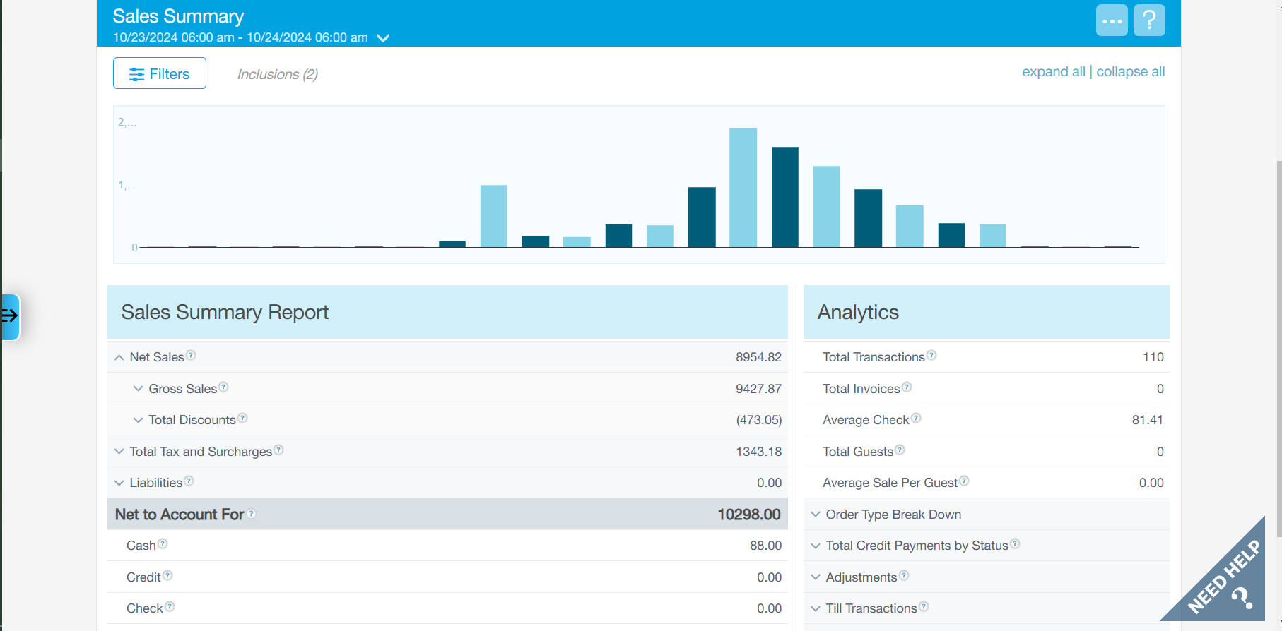 The taken sales date was 23/10/2024 from 6:00 AM until 6:00 PM.
