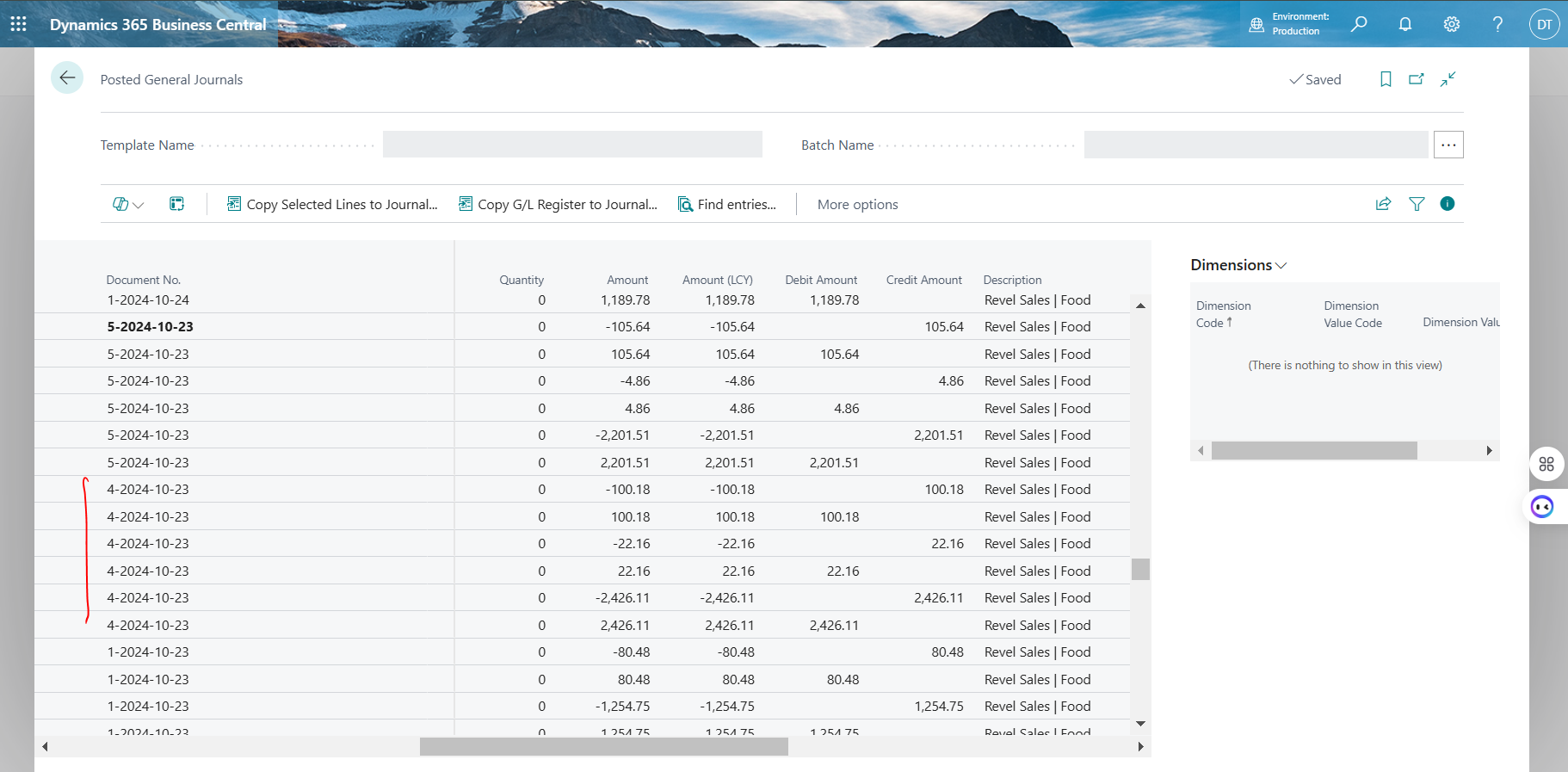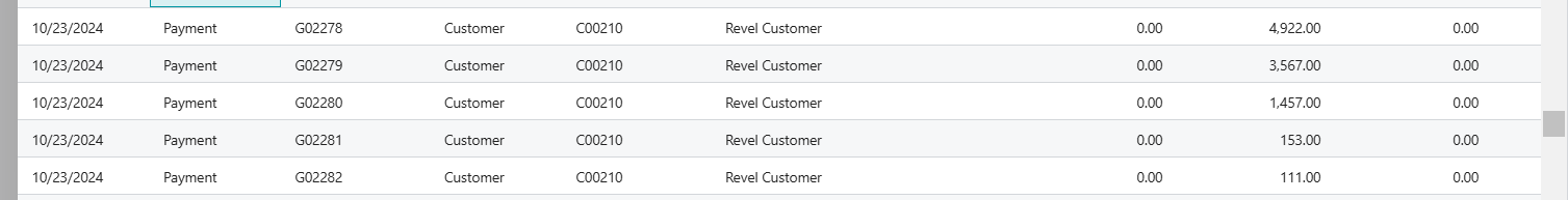 Return from Revel are posted on Business Central as Posted General Journals.