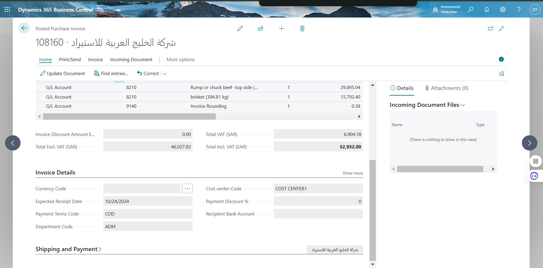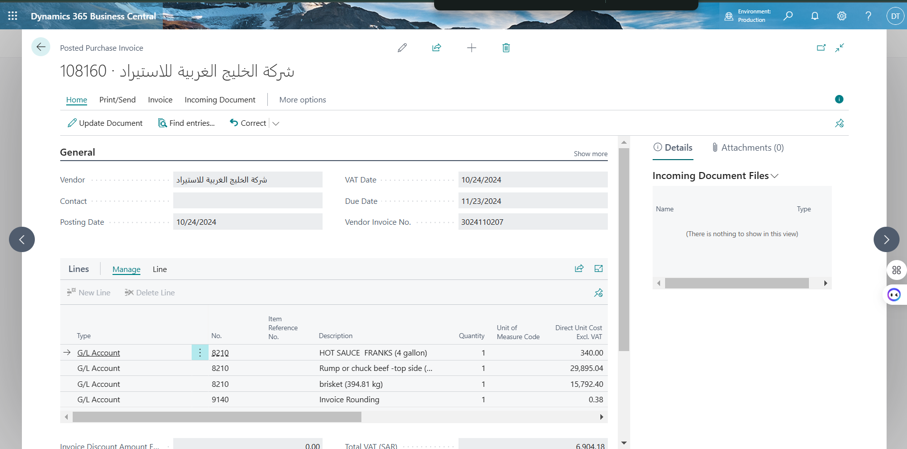 Vendor Name: شركة الخليج الغربية للاستيراد