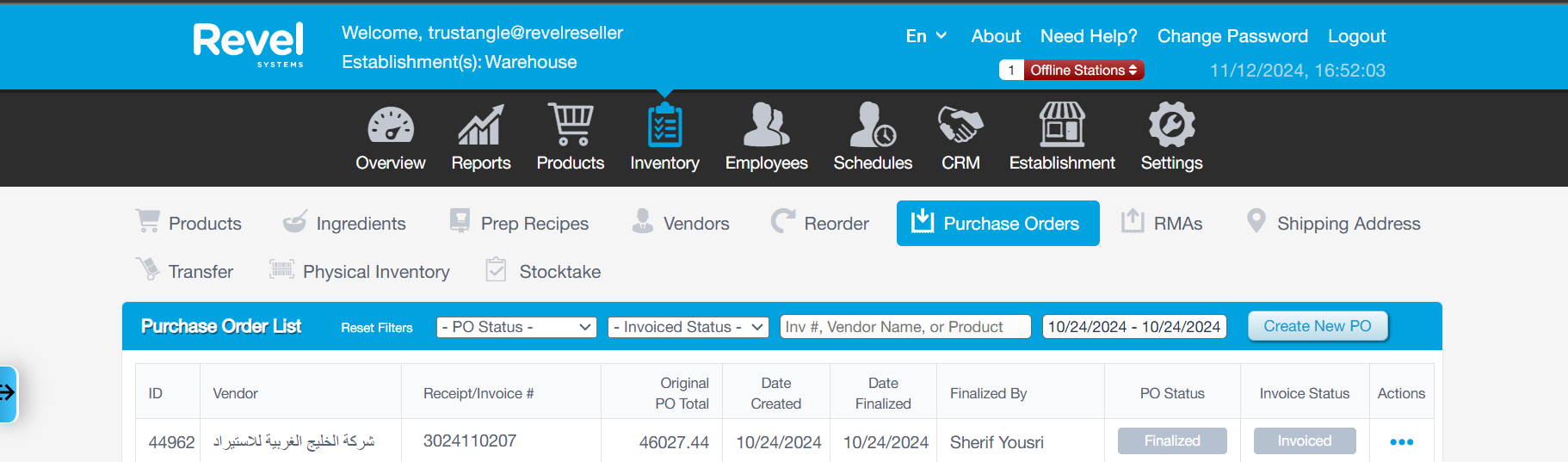 The integration takes the Purchase Order from Revel and posts on Business Central as Posted Purchase Invoice.