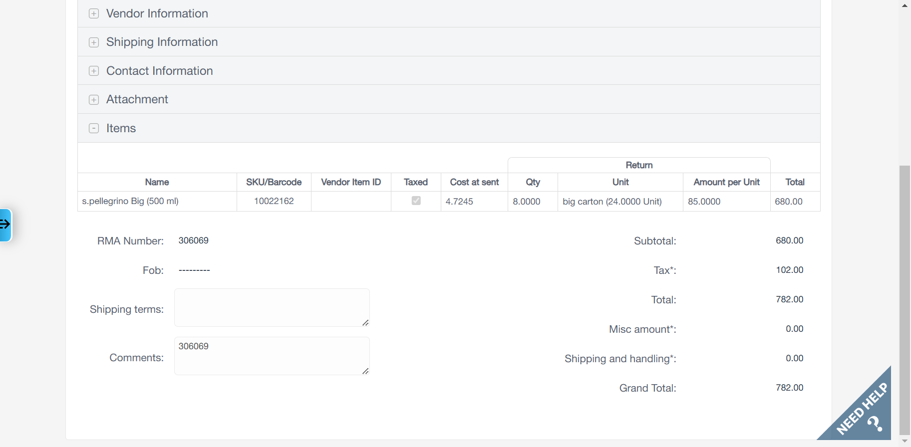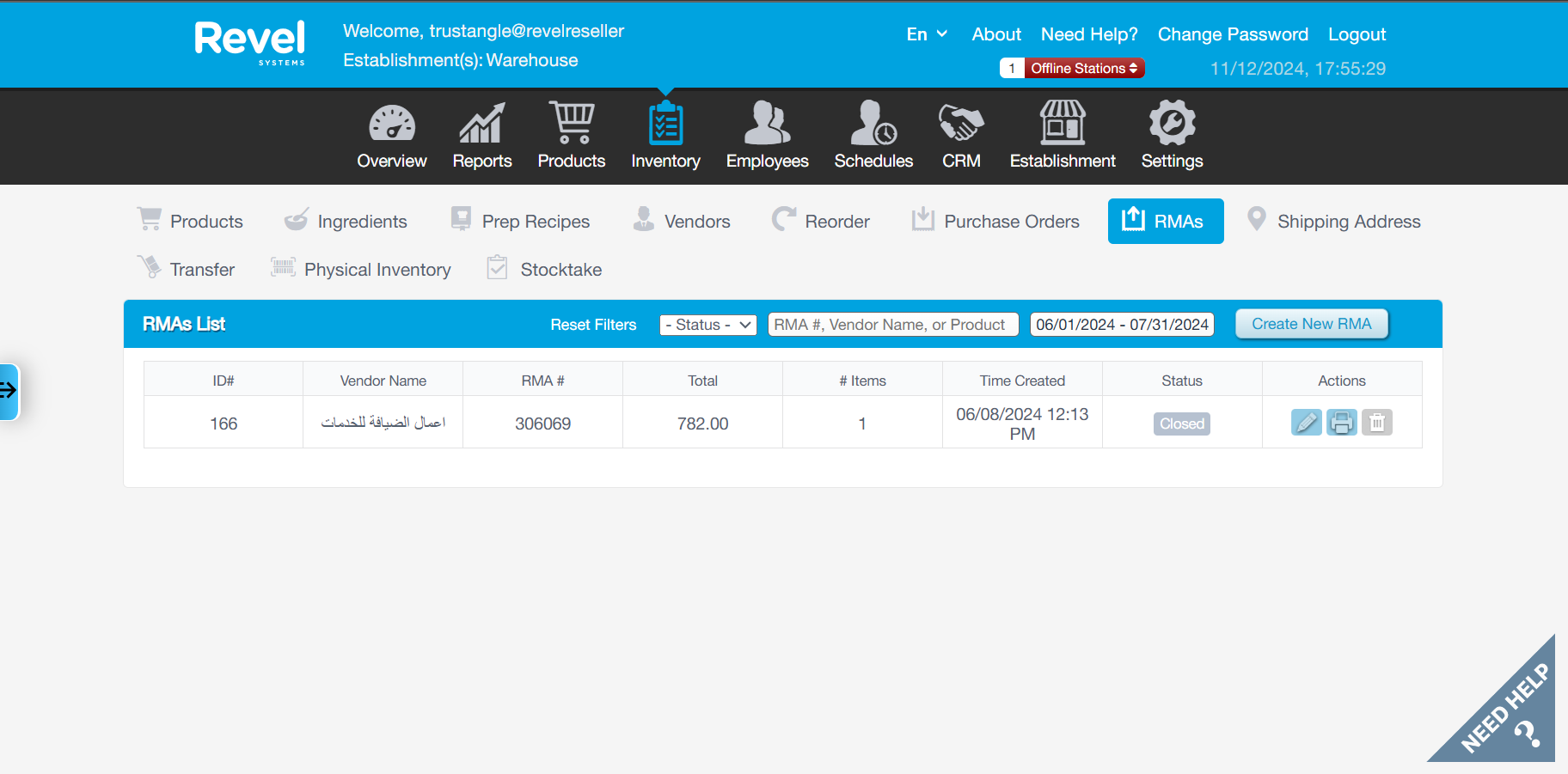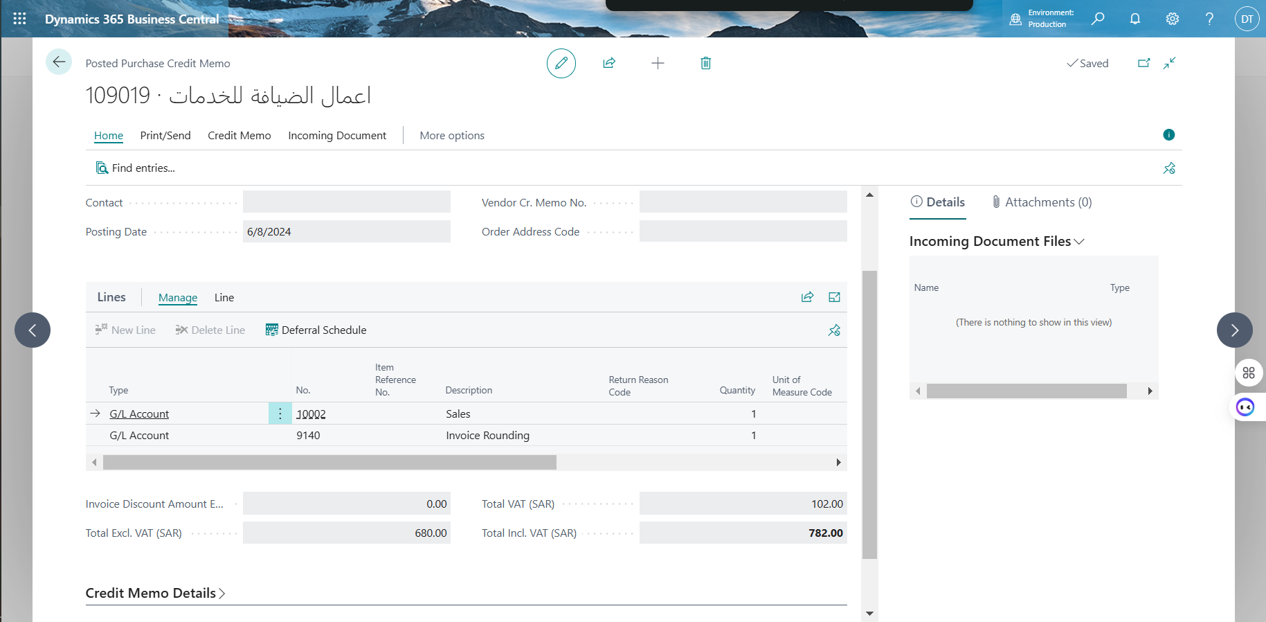 Vendor return from Revel are integrated to Business central as Posted Purchase Credit Memo.