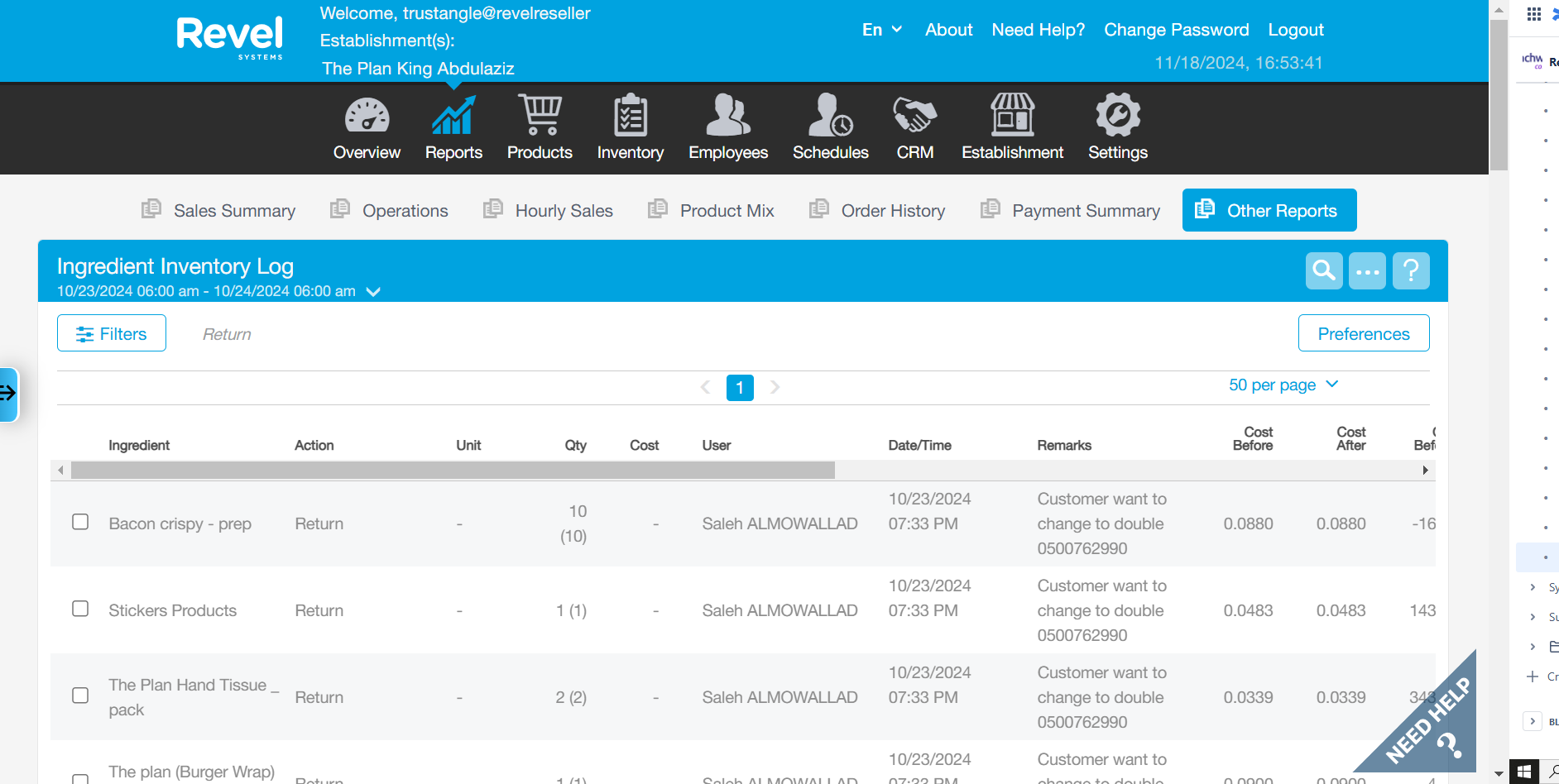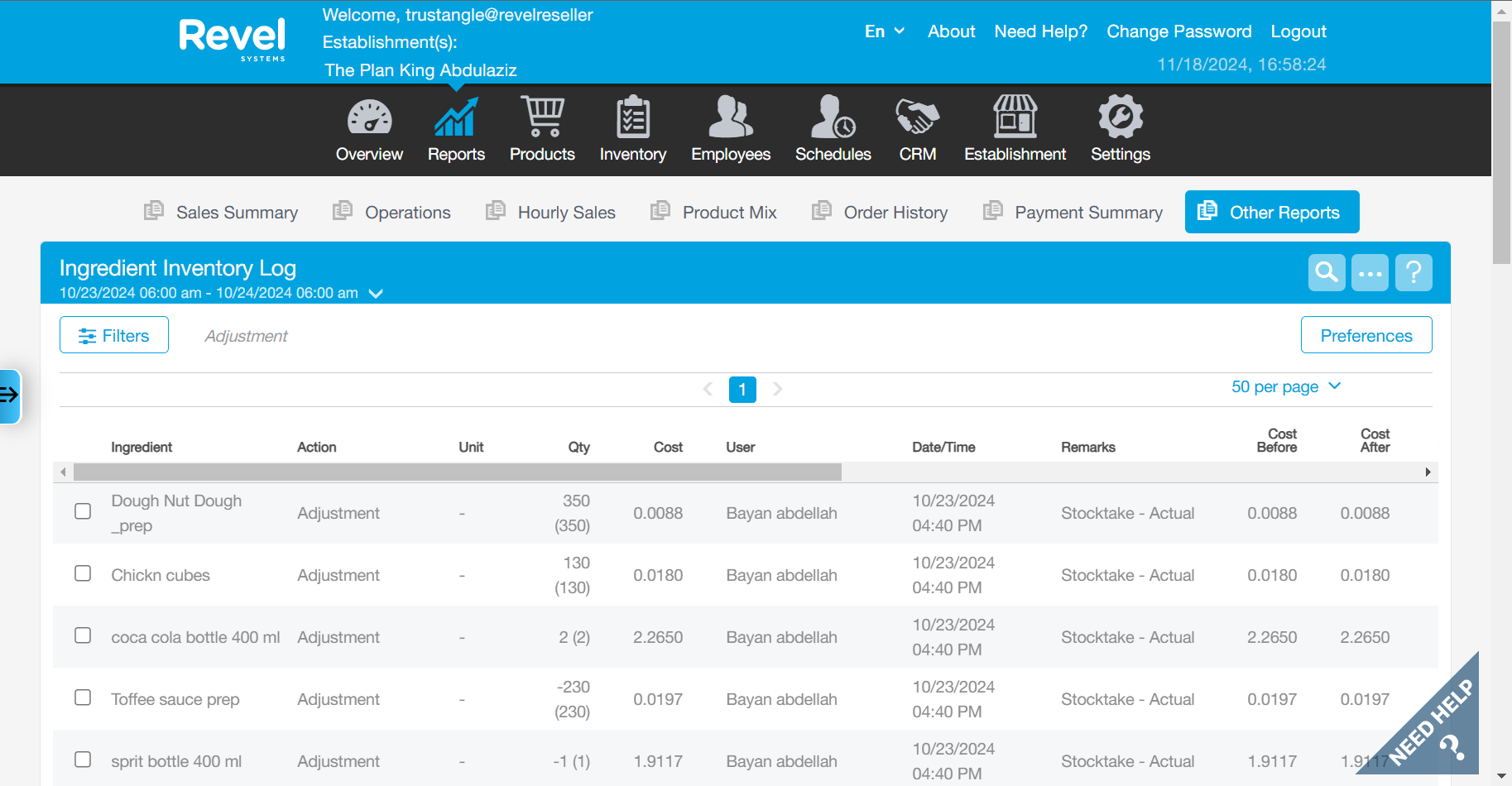 Please refer to Revel Report file attached to validate the COGS.