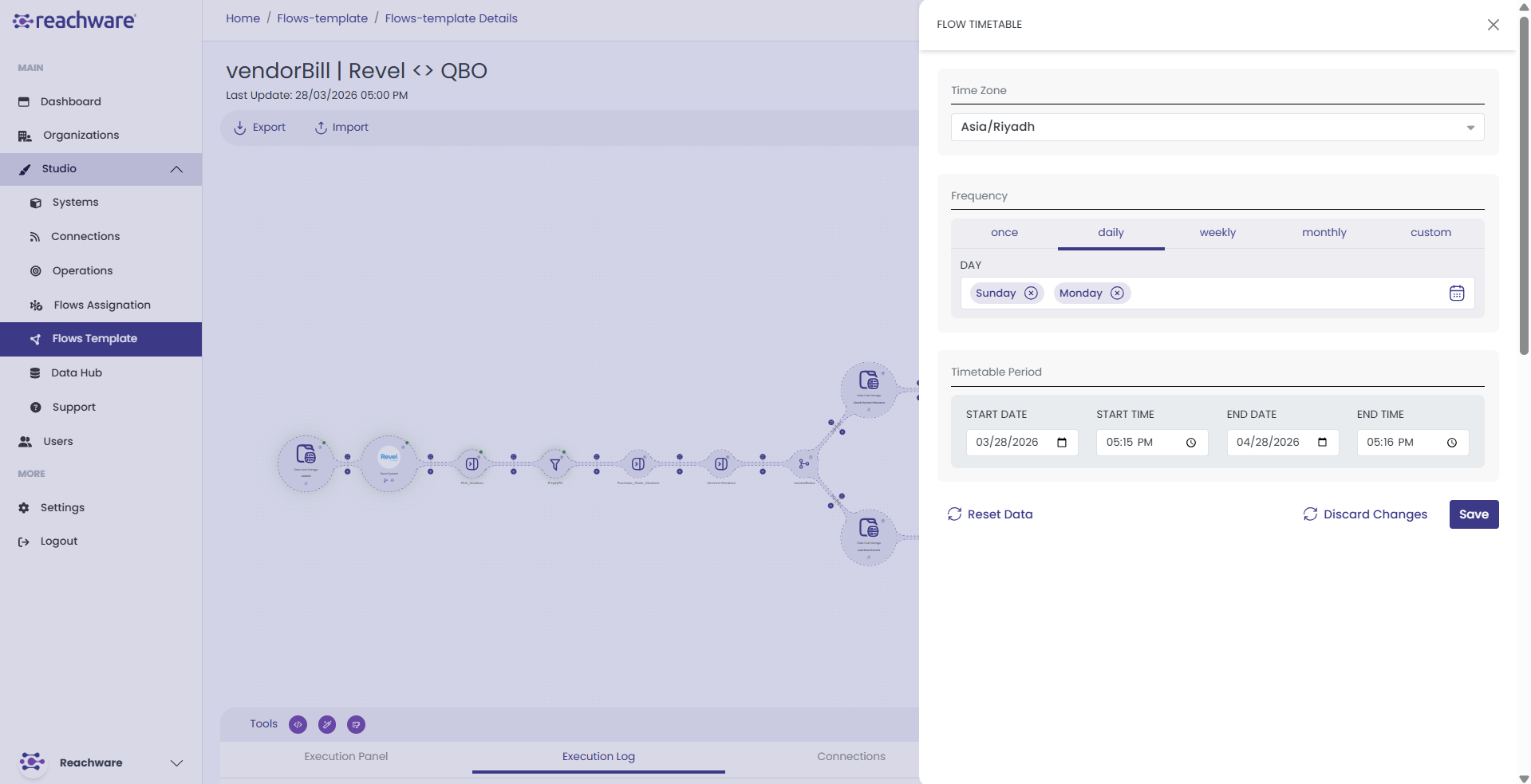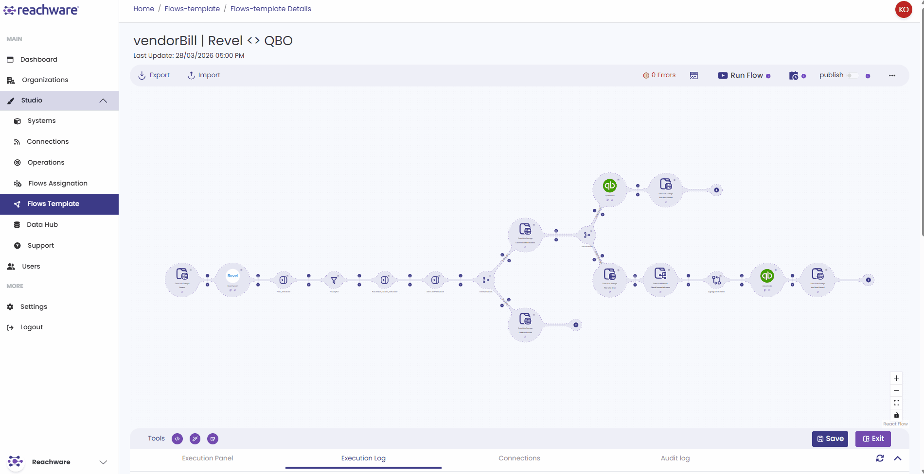 You can run the flow manually at any time. Once the execution is completed, you can review the results in the Execution Log, which provides detailed insights into the transaction including the status of each step and any issues or errors that may have occurred during the process.